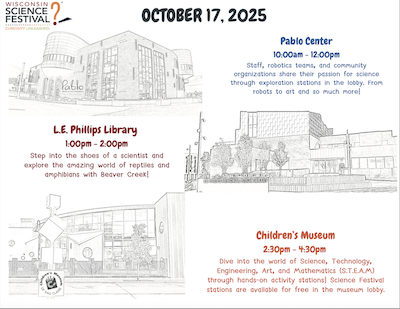 Dive into the world of Science, Technology, Engineering, Art, and Mathematics (S.T.E.A.M) through hands-on activity stations! Science Festival stations are available for free in the museum lobby.